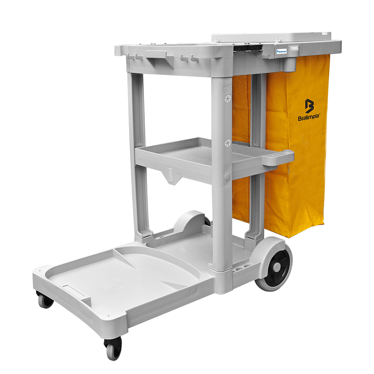 Carro Funcional América Amarelo – Bralimpia | Otimiza produtividade e organização em tarefas de limpeza | Ideal para transporte seguro de produtos e acessórios úmidos ou secos | Atende às normas NR 32 e NR 17 garantindo segurança e proteção dos trabalhadores | Saco de vinil com capacidade de até 90 litros ou 50 kg, com zíperes frontais e encaixe seguro | Corpo em polipropileno resistente e fácil de higienizar | Tampa com espaço para ferramentas e acessórios | Rodízios emborrachados para deslocamento suave e silencioso | Perfeito para hospitais, hotéis, escolas, indústrias e serviços gerais | Medidas montado: 116 x 57 x 100 cm | Desmontado: 87 x 30 x 57 cm | Peso: 19 kg | Tamanho da caixa: 54 x 86 x 30,5 cm | Código: -3822