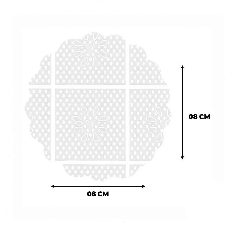 Especificações: - Medidas: 8 x 8 x 1cm; - Capacidade: 100 folhas; - Cor: Branco; - Modelo: Doilies; - Composição: Celulose; - Embalagem: 01 pacote com 100 unidades de fundo rendado."
