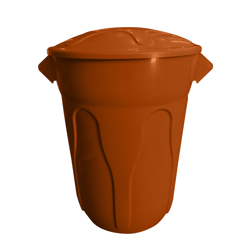 Lixeira plástica 100L com tampa sobreposta.