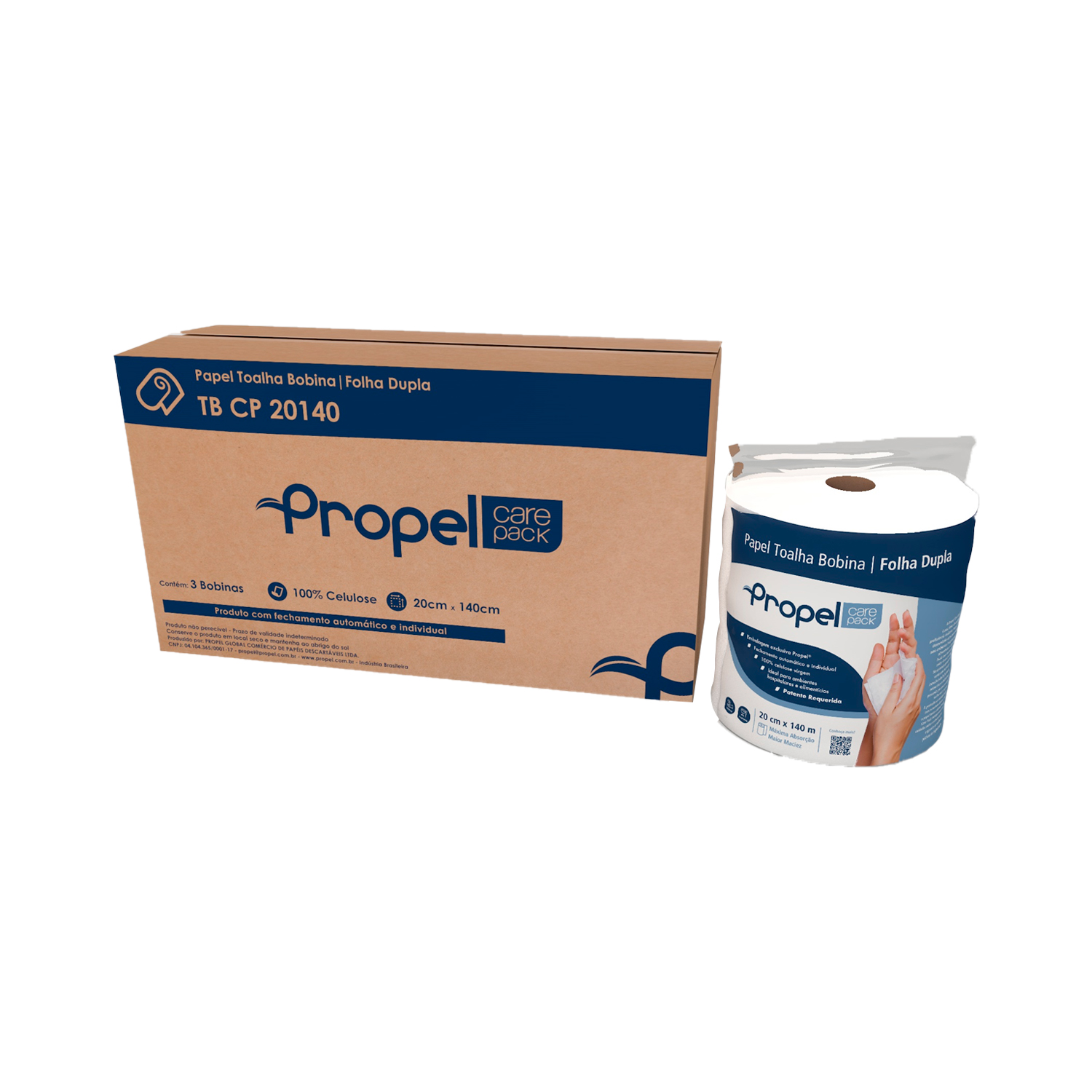 Especificações: - Referência: TB CP 20140 - Medidas (C x A): 140 metros x 20cm - Gramatura: 40 g/m² - Cor: Branco - Tipo: Folha Dupla - Modelo: Care Pack - Composição: 100% celulose virgem - Embalagem: 01 caixa com 3 bobinas de papel toalha."
