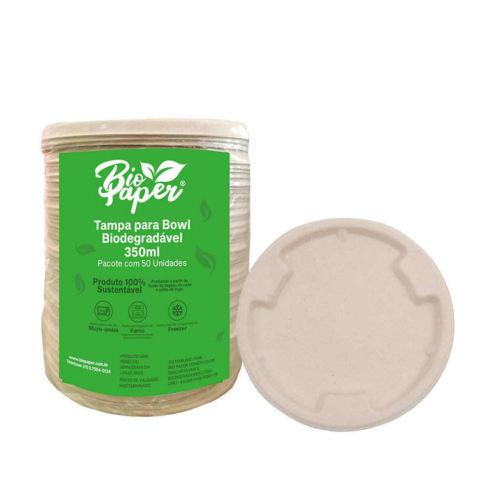 As tampas biodegradáveis Bio Paper são a escolha perfeita para quem busca aliar praticidade, eficiência e responsabilidade ambiental. Produzidas a partir de palha de trigo 100% compostável, são compatíveis com bowls de 350ml e potes de 500ml (vendidos separadamente). Suportam freezer, forno e micro-ondas, garantindo vedação segura para alimentos frios ou quentes. | marca: Bio Paper | produzida com palha de trigo – 100% compostável e ecológica | compatível com potes de 500ml e bowls de 350ml (vendidos separadamente) | vedação segura para alimentos quentes ou frios | pode ir ao freezer, micro-ondas e forno | leve, resistente e segura para contato com alimentos | indicada para delivery de açaí, sorvetes, saladas, massas e outros | modelo: tampa biodegradável para bowl/pote | diâmetro: 13,8 cm | cor: natural | embalagem: pacote com 50 unidades | dimensões do pacote: 14 cm (altura) x 13,4 cm (largura) | solução prática e sustentável para o seu negócio. | código: 9341